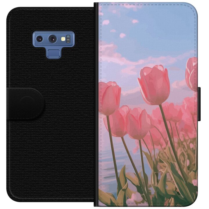 Plånboksfodral för Galaxy Note9 med Rosa Tulpaner -design. Fodralet kombinerar stil och funktion – ett slitstarkt mobilskal som skyddar mot repor och stötar samt praktiska kortfack på insidan.