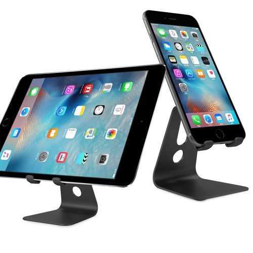 Snyggt och stabilt stativ i aluminium. Låt din telefon vila i stativet istället och frigör dina händer! Telefonen kan stå antingen horisontellt eller vertikalt. Anti-glid kuddar i silicon skyddar telefonen mot repor. Speciella utskärningar för att effektivt organisera allt kablage vid laddning.