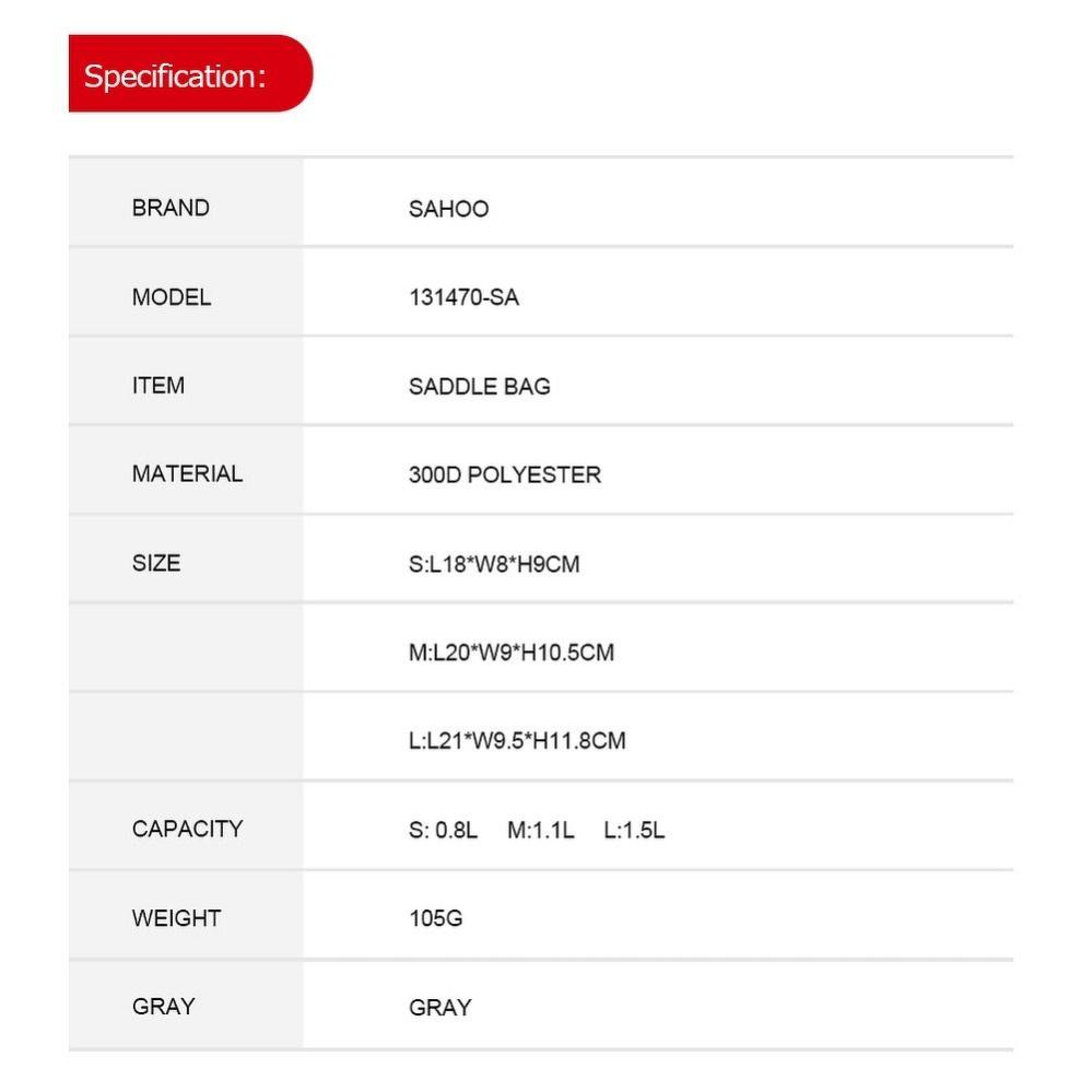 SAHOO Cykelväska under cykelsätet med dragkedja 0,7L