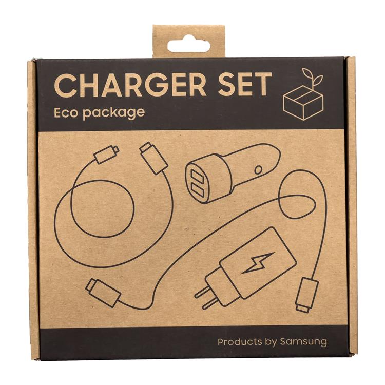 Samsung Laddare set 15W billaddare set, 25W väggladdare, USB kabel - USB Type C 1,5m, USB Type C kabel 1,8m 3A (eco pack) svart