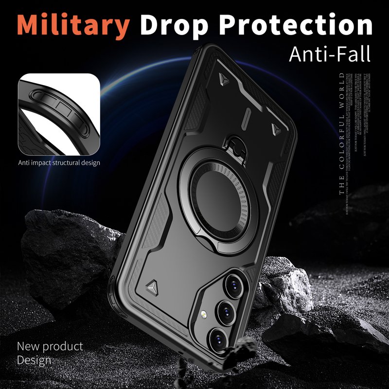 Detta fodral erbjuder militärklassat skydd för din smartphone. Tillverkat av hållbara PC- och TPU-material, ger det en pålitlig barriär mot stötar och fall. Med en inbyggd kickstand och MagSafe-kompatibilitet är detta fodral både funktionellt och praktiskt för din vardag.
