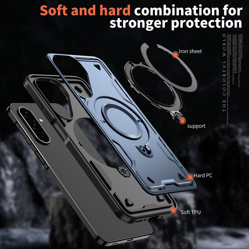 Vårt fodral erbjuder militärklassad skydd för din enhet. Tillverkat av hållbara PC- och TPU-material, ger det stöt- och fallskydd. Med en inbyggd kickstand kan du enkelt njuta av handsfree-visning. Fodralet är också kompatibelt med MagSafe-laddare för snabb och säker laddning. Med upphöjda kanter skyddas både skärmen och kameran effektivt.