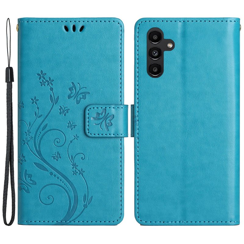 Handla denna produkt Samsung Galaxy A35 5G Fodral Äkta Läder Fjärilsdesign - Blå
