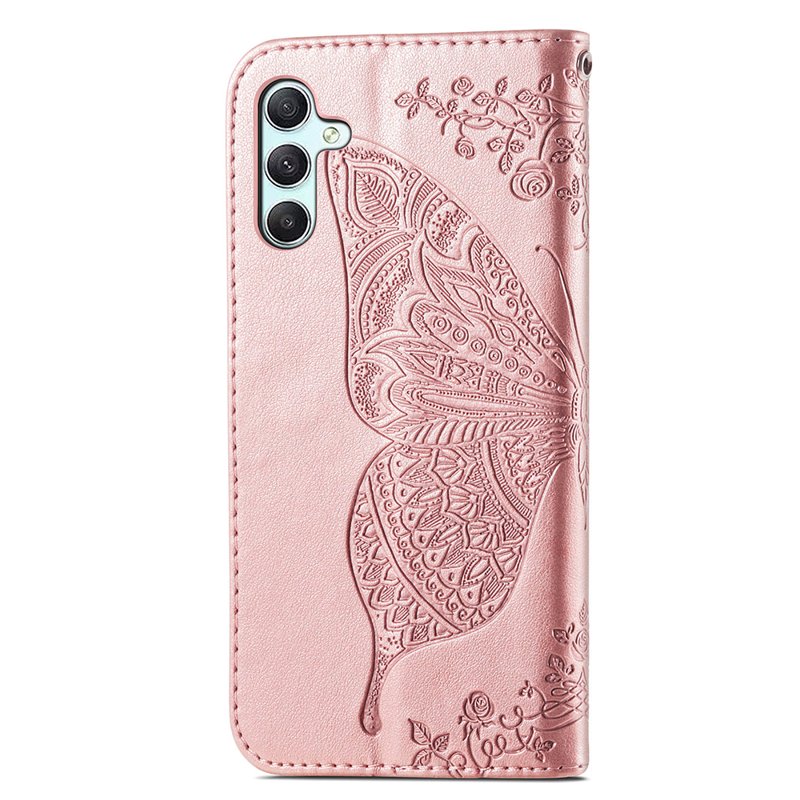 Handla denna produkt Samsung Galaxy A35 5G Fodral Äkta Läder Fjärilsmönster - Roséguld