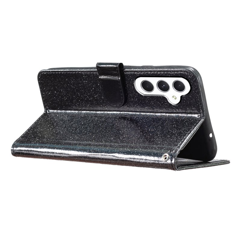 Samsung Galaxy A35 5G Fodral Äkta Läder Glittrande - Svart