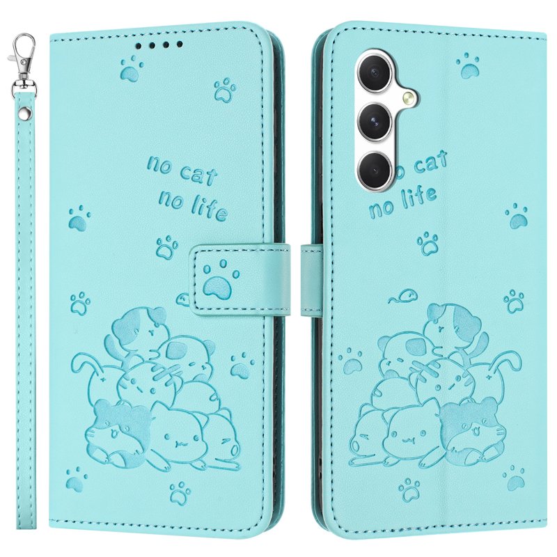 - Charmigt kattmönster - Fodralet har ett imiterat kattmotiv med texten "no cat, no life", vilket ger en lekfull och unik stil.