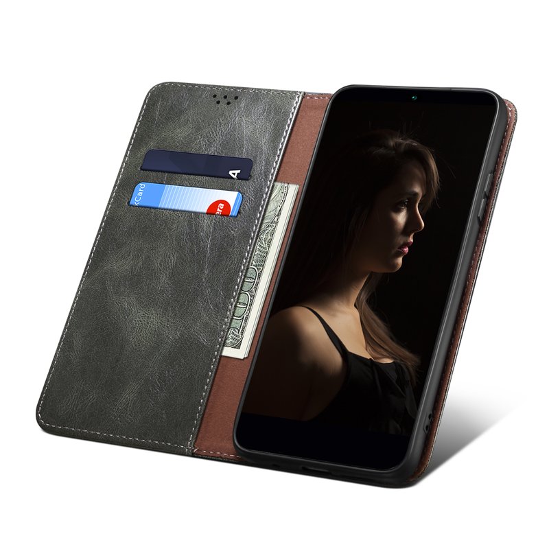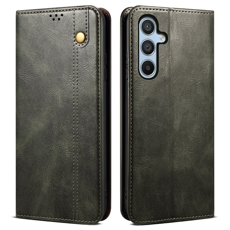 Handla denna produkt Samsung Galaxy A35 5G Fodral Äkta Läder Magnetisk Stängning - Grön