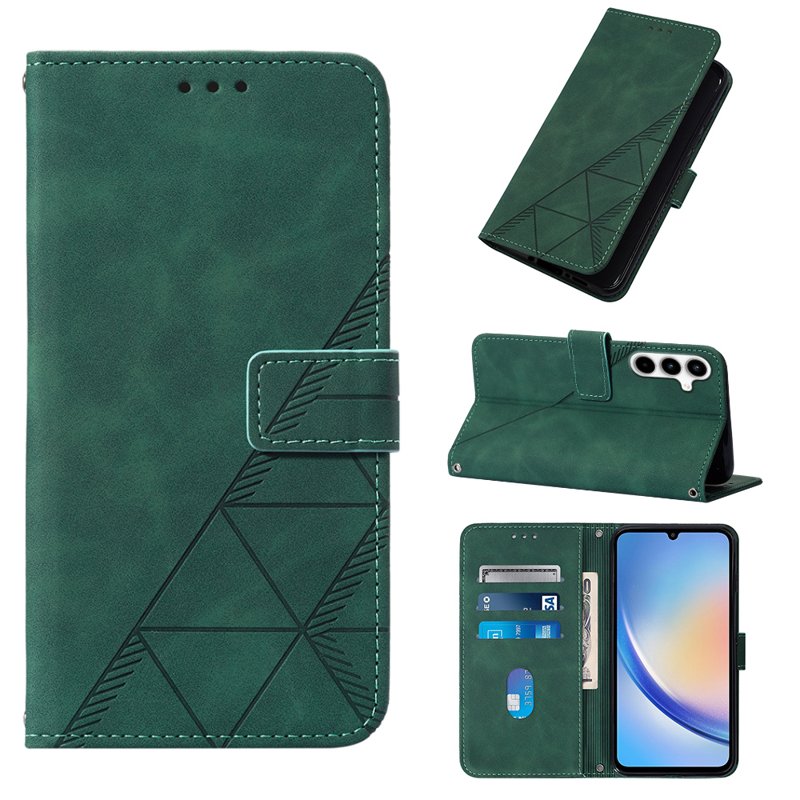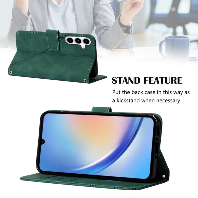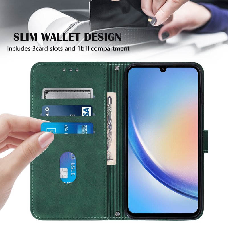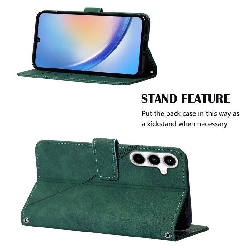 Skydda din Samsung Galaxy A35 5G med detta eleganta läderfodral i svartgrön färg. Fodralet har en praktisk handrem och en inbyggd ställning för handsfree-användning. Med en smart plånboksdesign kan du enkelt förvara kort och kontanter. Detta fodral kombinerar stil och funktionalitet för en aktiv livsstil.