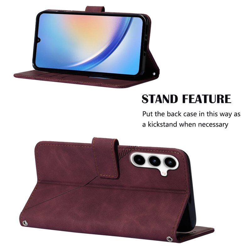 Skydda din Samsung Galaxy A35 5G med detta eleganta läderfodral i vinröd färg. Fodralet är designat för att kombinera stil och funktionalitet. Med en praktisk handrem och en inbyggd ställning är detta fodral perfekt för den moderna livsstilen.