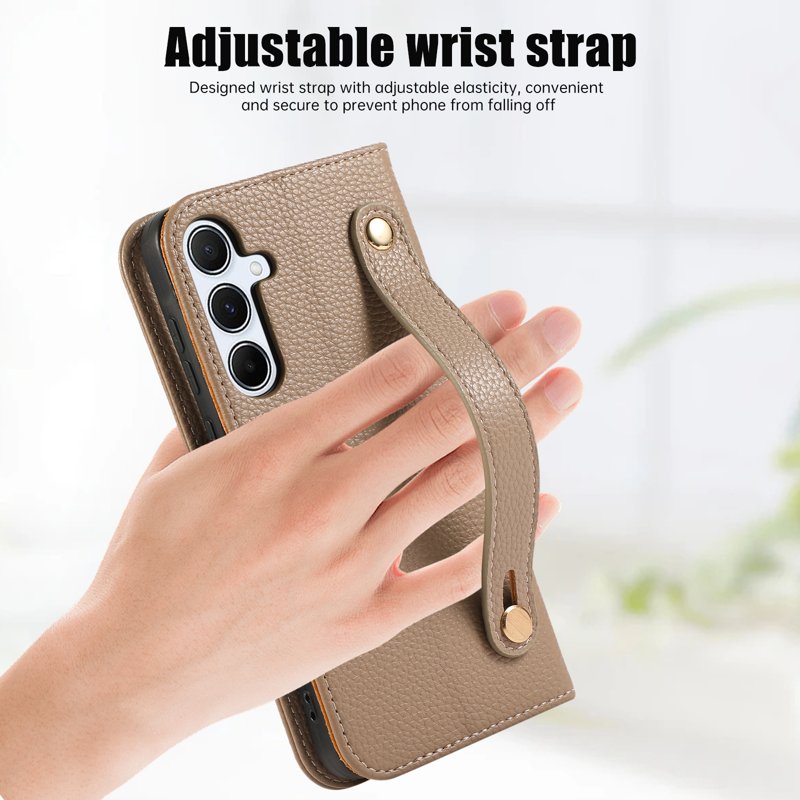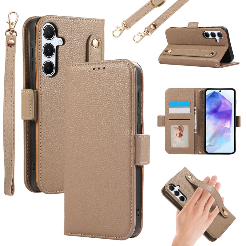 Samsung Galaxy A35 5G Fodral Äkta Läder Med Kortfack - Khaki