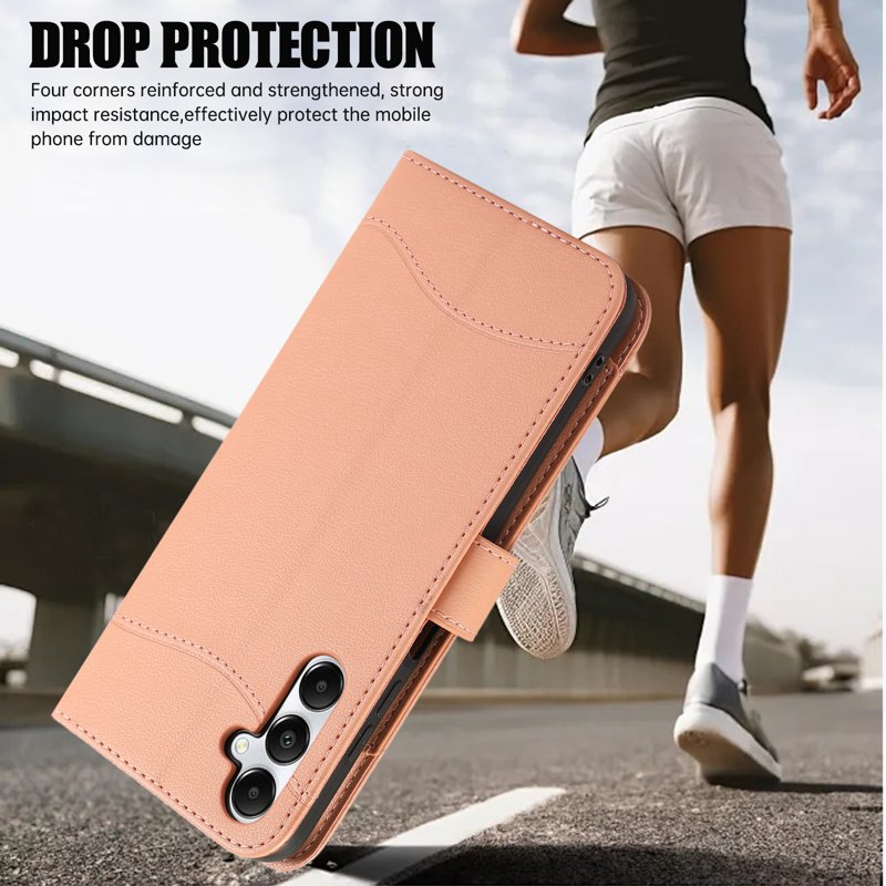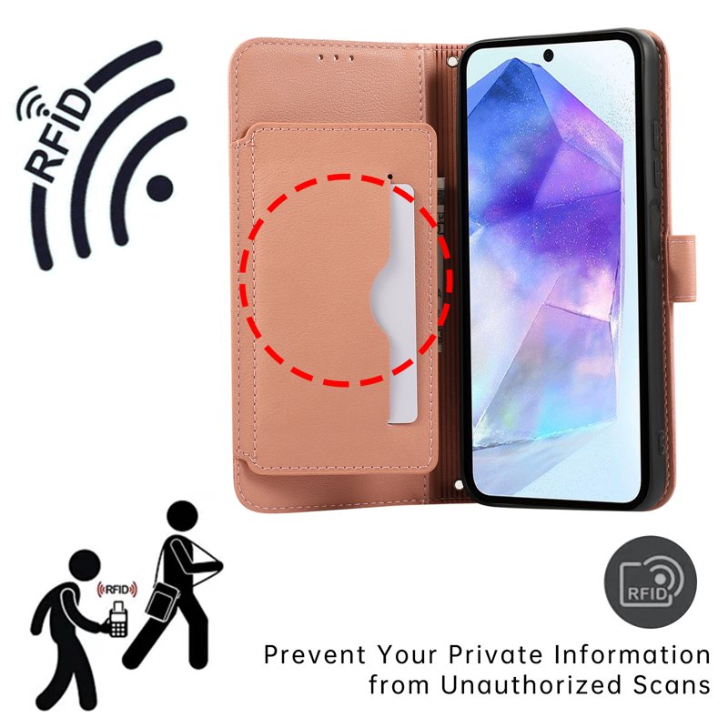 Skydda din Samsung Galaxy A35 5G med detta eleganta läderfodral. Fodralet har en praktisk kortficka och är designat för att ge både stil och säkerhet. Med avancerad RFID-skyddsteknik skyddar det dina kort och personlig information. Perfekt för vardagsbruk.