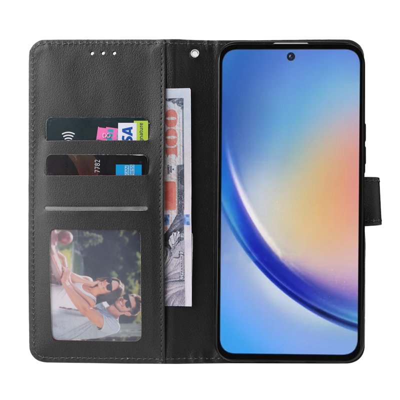 Skydda din Samsung Galaxy A35 5G med denna stiliga och funktionella plånboksfodral i PU-läder. Den är designad för att ge både säkerhet och bekvämlighet. Med smarta funktioner som kortfack och ett vikbart stativ är detta fodral perfekt för den moderna användaren.