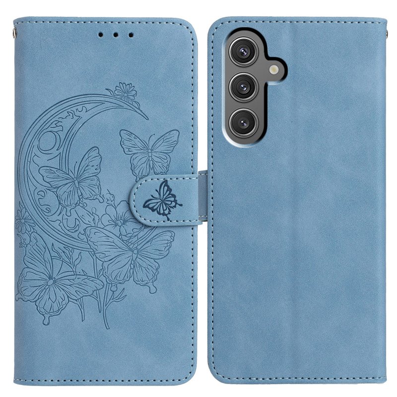 Sky Blue fodral för Samsung Galaxy A35 5G är både stiligt och funktionellt. Med ett vackert mönster av fjärilar och blommor är detta fodral den perfekta accessoaren för din enhet. Det kombinerar plånbok och telefonfodral, vilket gör det enkelt att organisera kort och kontanter.