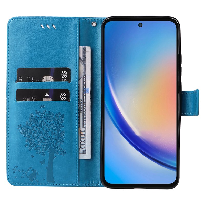 Skydda din Samsung Galaxy A35 5G med detta eleganta fodral i läder med kattträdsmönster. Fodralet kombinerar stil och funktionalitet. Det är perfekt för den som vill ha ett skydd som också fungerar som en plånbok. Med praktiska funktioner och en unik design är detta fodral ett utmärkt val för din smartphone.
