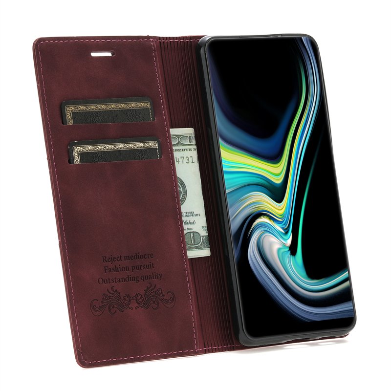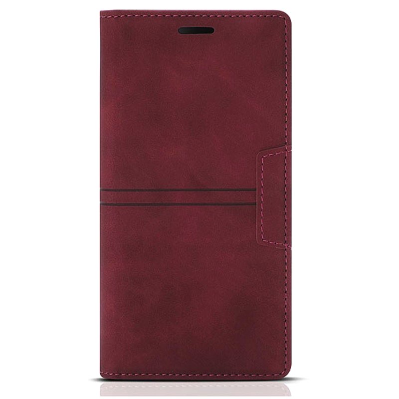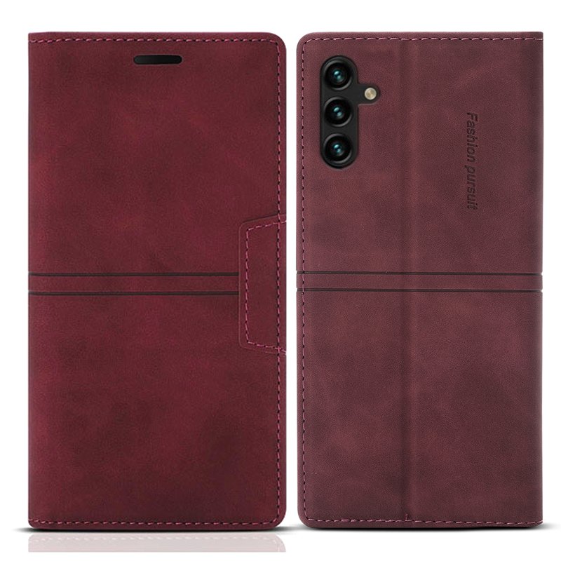 Samsung Galaxy A35 5G Fodral Magnetiskt Flip Ställ Äkta Läder - Vinröd