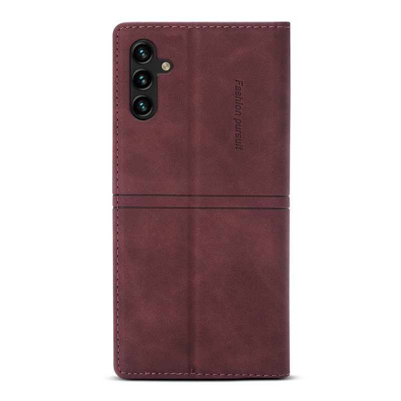 Handla denna produkt Samsung Galaxy A35 5G Fodral Magnetiskt Flip Ställ Äkta Läder - Vinröd