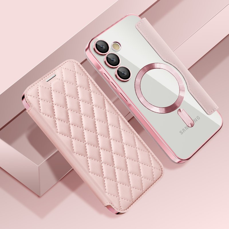 Samsung Galaxy A35 5G Fodral Rhombus Äkta Läder Magnetiskt - Rosa