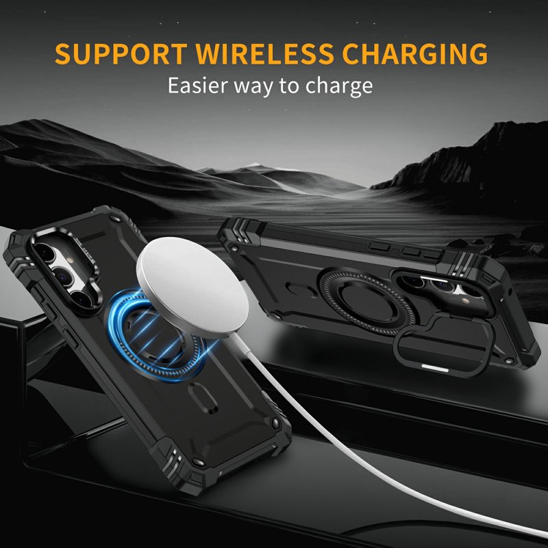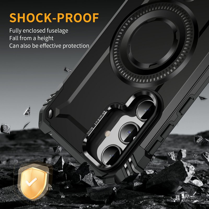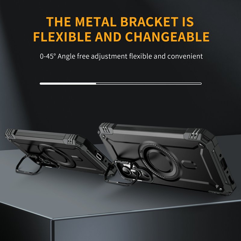 Skydda din Samsung Galaxy A35 5G med detta magnetiska fodral som erbjuder överlägsen stötabsorbering och funktionalitet. Med en justerbar kickstand och stark magnetisk adsorption är detta fodral perfekt för både vardagligt bruk och resor. Håll din telefon säker och lättillgänglig med stil.
