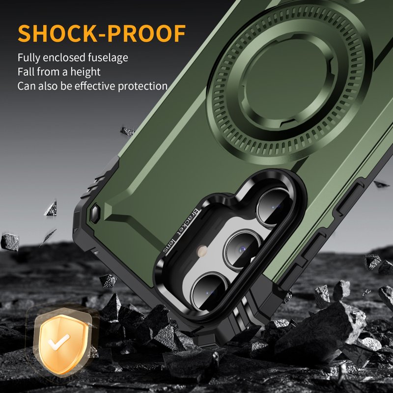 Skydda din Samsung Galaxy A35 5G med detta magnetiska fodral i militärgrön. Fodralet har en robust metallram och en praktisk kickstand. Det är designat för att ge överlägset skydd och funktionalitet. Med högkvalitativa material och smarta funktioner är detta fodral perfekt för både arbete och nöje.