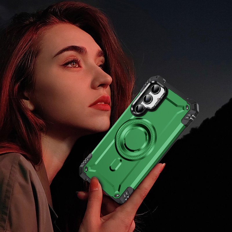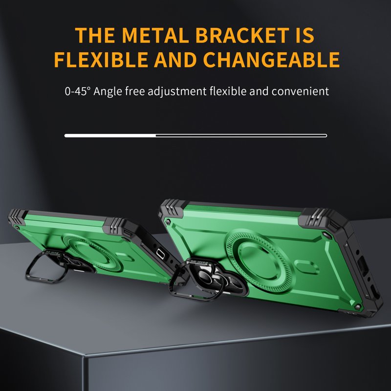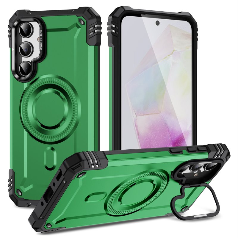 Samsung Galaxy A35 5G Skal Metall Linsskydd Kickstand Plast - Grön