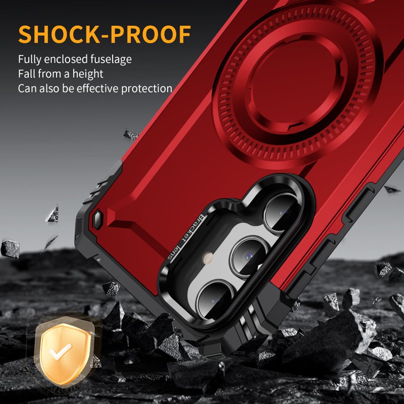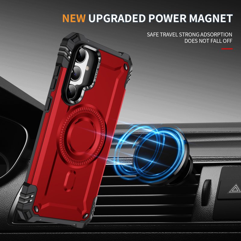 Skydda din Samsung Galaxy A35 5G med det här magnetiska fodralet med metallram och kickstand. Det erbjuder både stil och funktionalitet. Med flera smarta funktioner är detta fodral perfekt för dig som vill ha ett pålitligt skydd och samtidigt kunna njuta av multimedia och spel utan hinder.