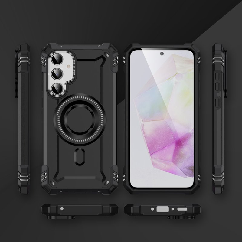 Skydda din Samsung Galaxy A35 5G med det här magnetiska fodralet med metallram och kickstand. Fodralet kombinerar stil och funktionalitet. Det erbjuder ett robust skydd och praktiska funktioner för en aktiv livsstil. Perfekt för videovisning, spel och möten.