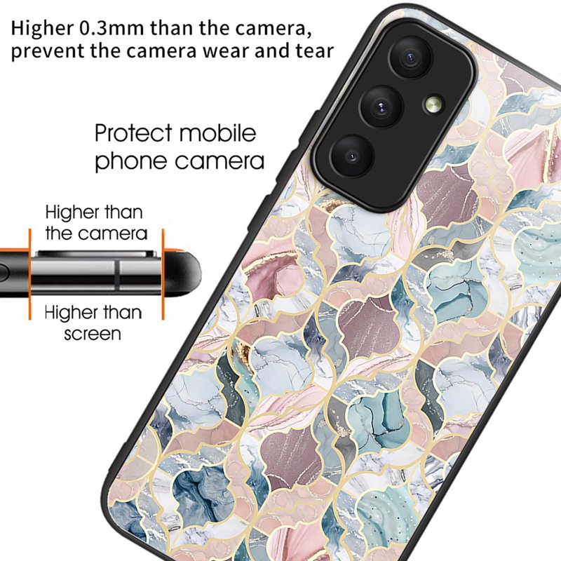 Skydda din Samsung Galaxy A35 5G med detta stiliga och funktionella mobilskal. Med ett mönster av marmor och tillverkat av TPU och härdat glas, erbjuder detta skal både stil och hållbarhet. Det är designat för att motstå stötar och fall, vilket gör det till det perfekta valet för din telefon.