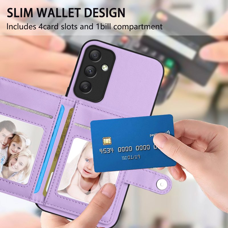 Skydda din Samsung Galaxy A35 5G med detta eleganta och funktionella fodral. Med RFID-blockering och en praktisk kortficka erbjuder detta fodral både säkerhet och bekvämlighet. Den stiliga designen i lila PU-läder och TPU ger ett bra grepp och skydd mot skador. Perfekt för den moderna användaren.