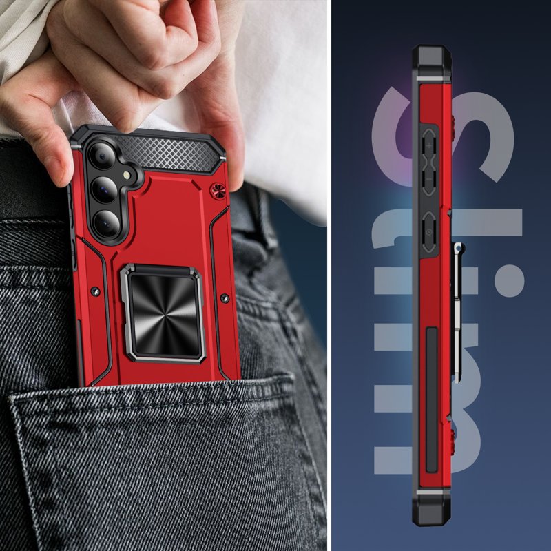 Skydda din Samsung Galaxy A35 5G med detta robusta och funktionella fodral. Fodralet har en roterande kickstand och erbjuder överlägsen drop protection. Med sitt dubbla lager av plast och TPU ger det ett pålitligt skydd mot stötar och fall. Perfekt för den som vill ha både stil och säkerhet.