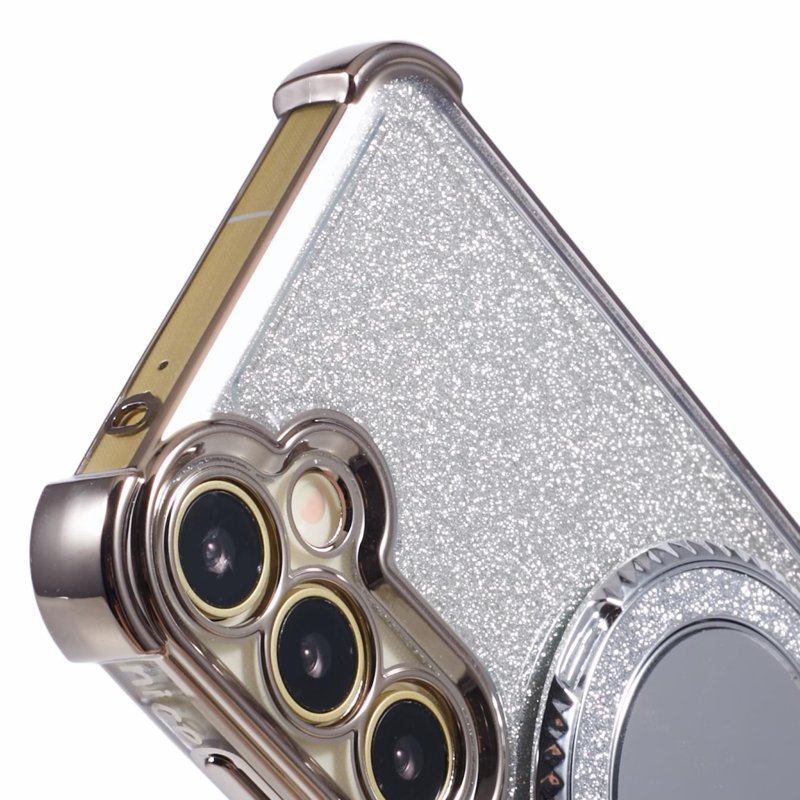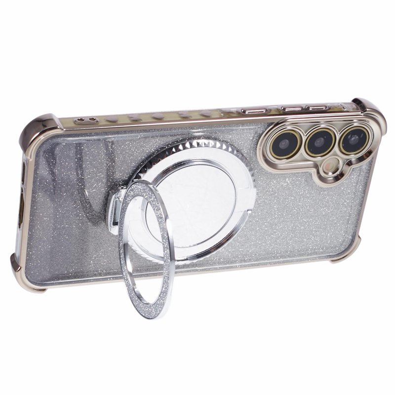 Skydda din Samsung Galaxy A35 5G med detta TPU Glitter Phone Cover. Det eleganta grå fodralet kombinerar stil och funktionalitet. Med en kickstand och spegel är detta fodral perfekt för både skydd och användning. Håll din telefon säker och se bra ut samtidigt.