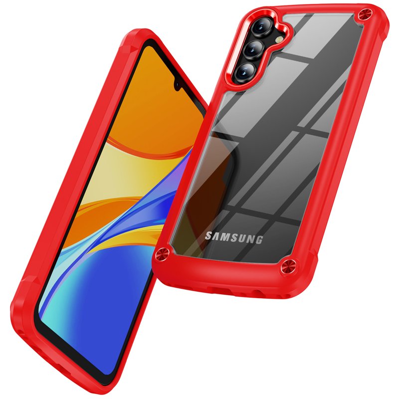 Skydda din Samsung Galaxy A35 5G med detta TPU-ram och klara PC-baksidan. Detta skal kombinerar hållbarhet med stil. Det är designat för att ge överlägset skydd och en elegant look. Perfekt för den moderna användaren som vill ha både funktion och estetik.