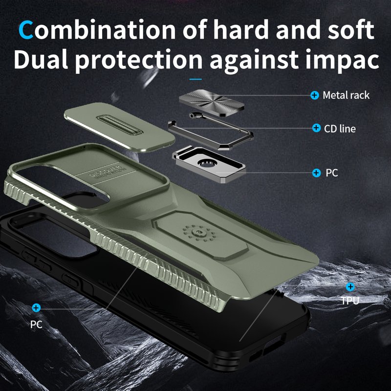 - Dubbelt skydd: Kombinationen av hård PC och mjukt TPU ger ett robust skydd mot stötar och slitage.
