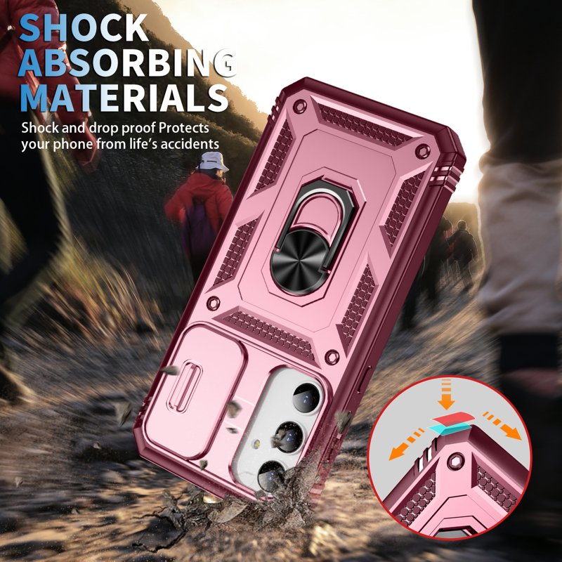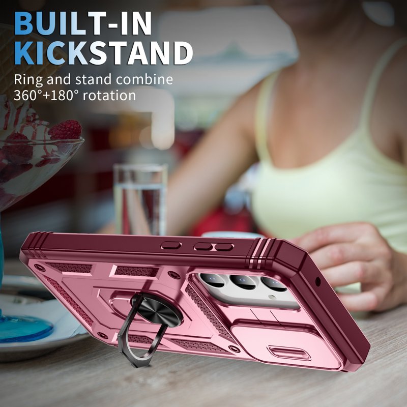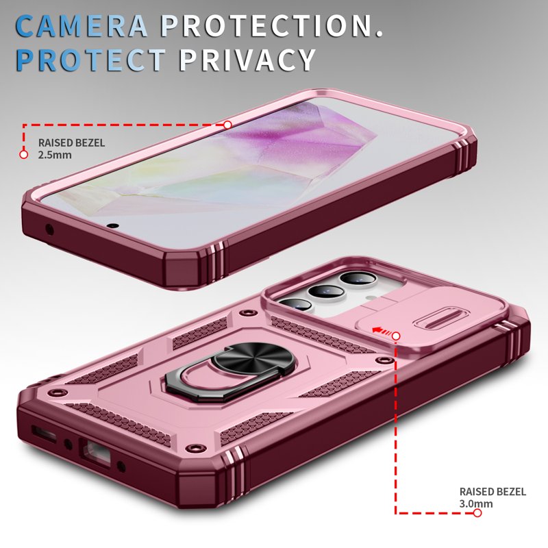Skydda din Samsung Galaxy A35 5G med detta TPU+PC-fodral i mörkröd färg. Fodralet har en praktisk kickstand och ett skyddande linslock. Det erbjuder både stil och funktionalitet, vilket gör det till det perfekta valet för din smartphone.