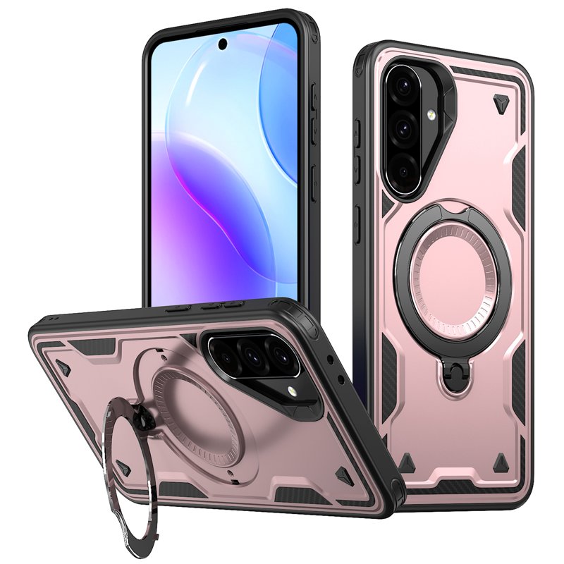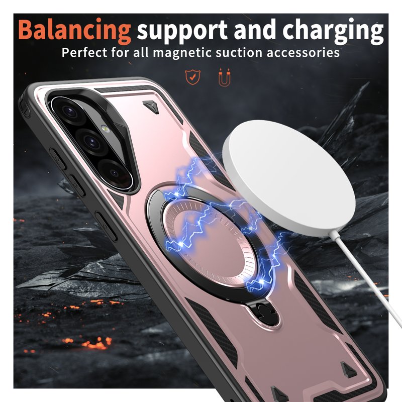 Vårt telefonfodral erbjuder militärklassat skydd och är tillverkat av hållbara PC- och TPU-material. Det ger ett chockresistent och stöttåligt skydd för din enhet. Med en 360-graders roterande kickstand kan du enkelt njuta av handsfree-visning. Fodralet är också kompatibelt med MagSafe-laddare för snabb och säker laddning.