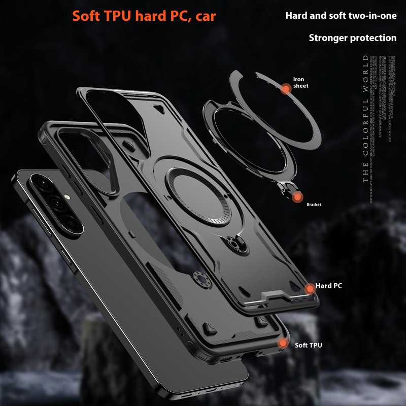 Vårt fodral erbjuder militärklassat skydd för din telefon. Tillverkat av hållbara PC- och TPU-material, skyddar det mot stötar och fall. Med en inbyggd kickstand kan du enkelt njuta av handsfree-visning. Fodralet är också kompatibelt med MagSafe-laddare för snabb och säker laddning. Håll din enhet säker och funktionell med detta högkvalitativa fodral.