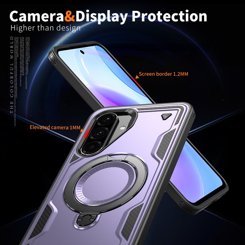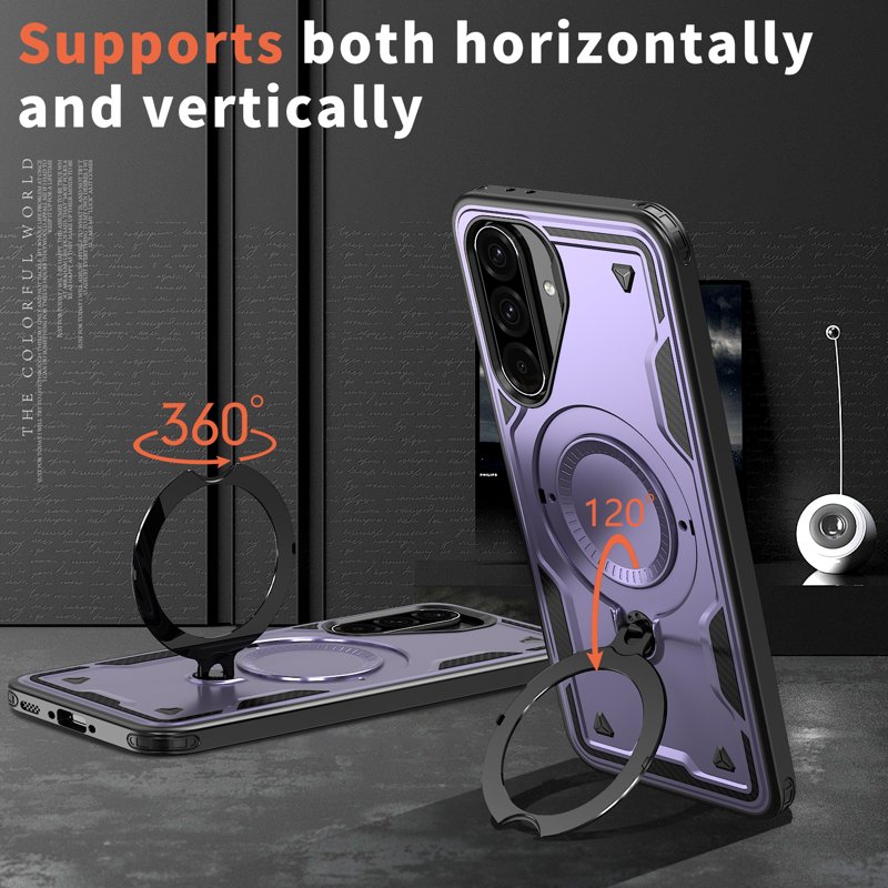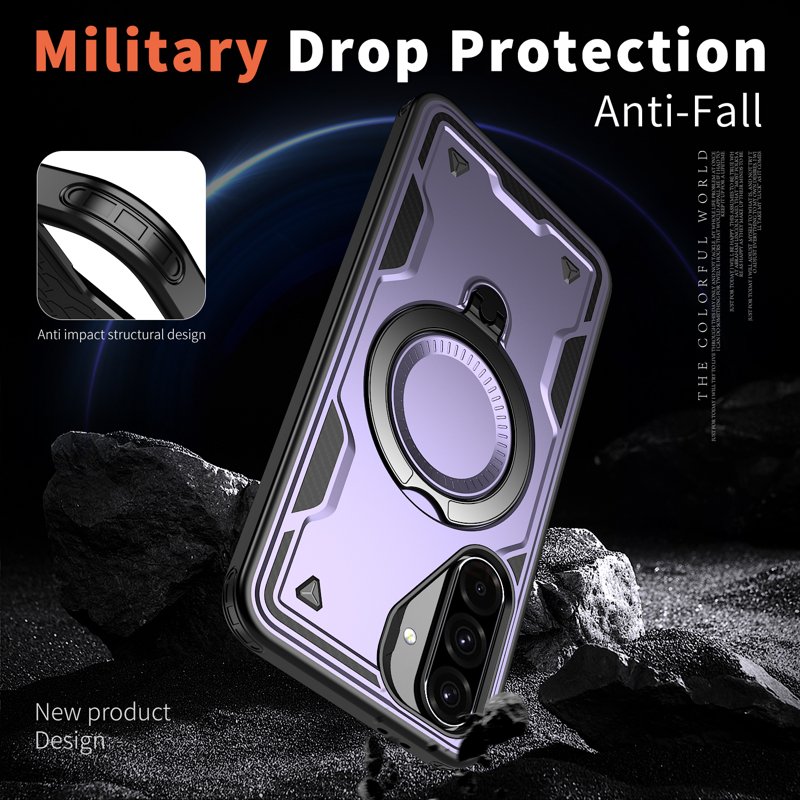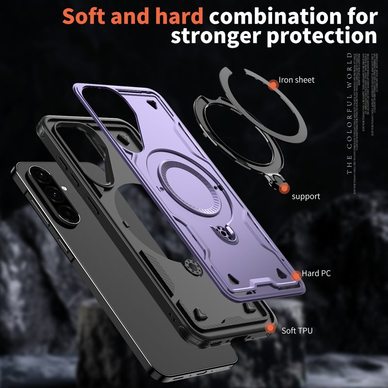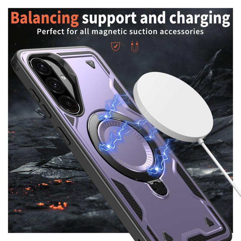 Denna telefonfodral erbjuder överlägsen skydd med en hållbar kombination av PC och TPU-material. Den är stöttålig och fallskyddad, vilket gör att din enhet förblir säker även under tuffa förhållanden. Med en inbyggd kickstand och MagSafe-kompatibilitet är detta fodral både praktiskt och funktionellt.