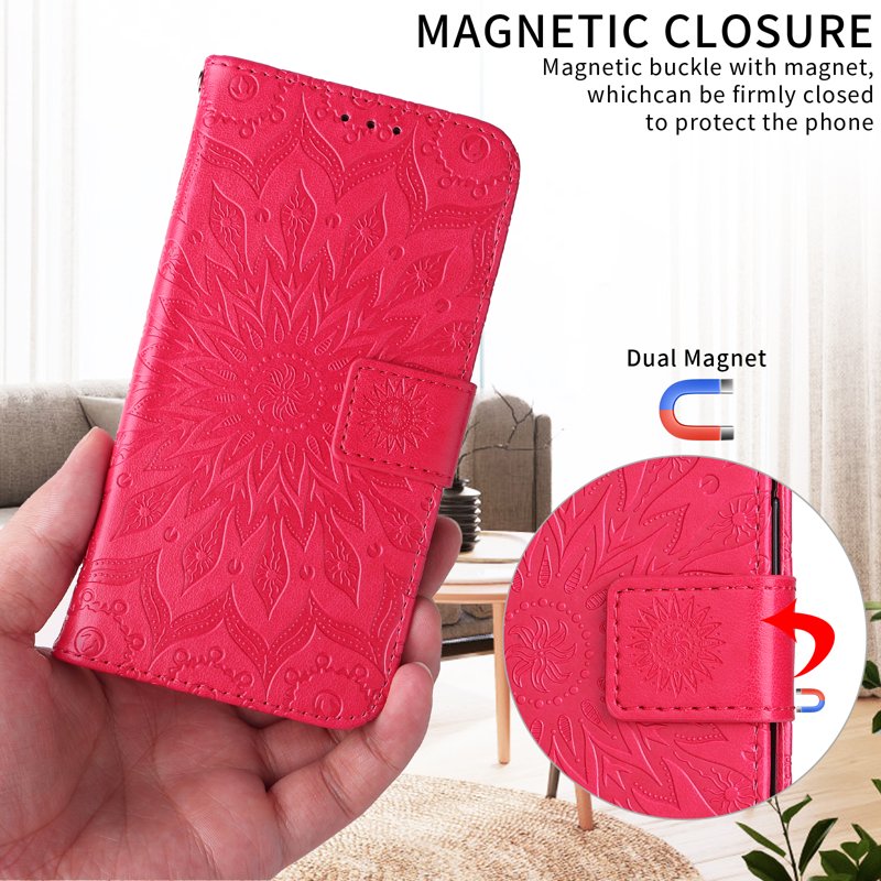 Detta eleganta fodral i PU-läder kombinerar stil och funktionalitet. Med en robust TPU-inre skal erbjuder det överlägset skydd för din telefon. Den vackra 3D-solrosdesignen ger en unik touch. Fodralet har även praktiska kortfack och en ståfunktion för handsfree-användning. Perfekt för den moderna användaren som värdesätter både estetik och praktiska lösningar.