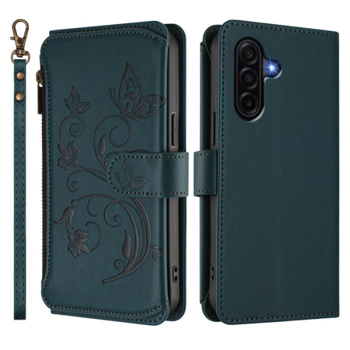 Samsung Galaxy A37 Plånboksfodral Konstläder Blomtryck - Grön