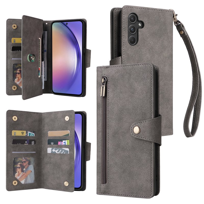 Samsung Galaxy A55 5G Plånboksfodral Konstläder Flip Skydd - Grå