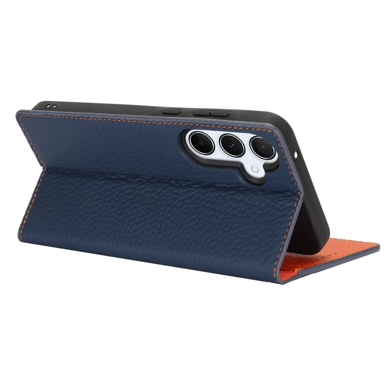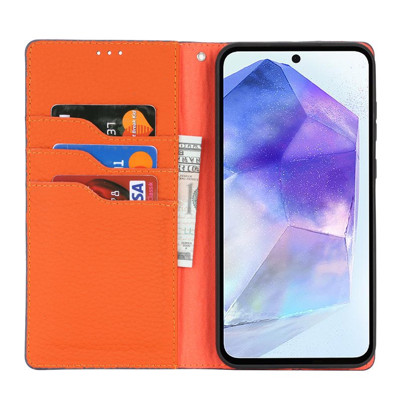 Skydda din Samsung Galaxy A55 5G med ett elegant och funktionellt fodral i äkta nötläder. Detta fodral har en litchi-textur som ger en lyxig känsla. Med smarta funktioner och hållbara material är detta fodral det perfekta valet för den stilmedvetna användaren.