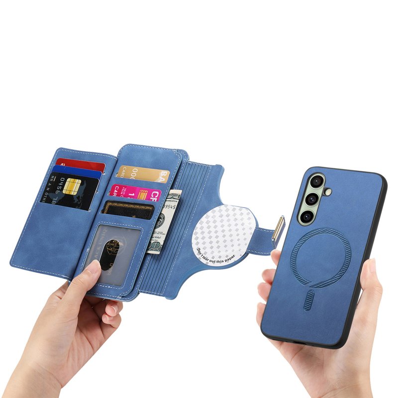 Skydda din Samsung Galaxy A55 5G med det magnetiska läderfodralet med avtagbar RFID-blockerande dragkedjeväska. Detta fodral kombinerar stil och funktionalitet. Det erbjuder ett lyxigt skydd mot slitage och har smarta förvaringslösningar för dina viktigaste tillhörigheter.