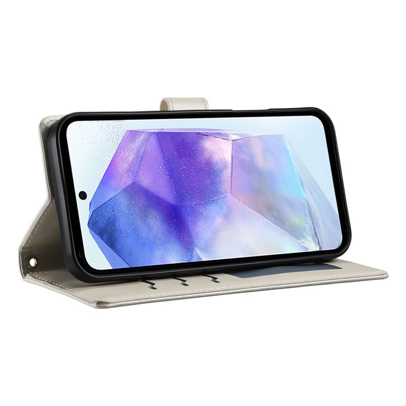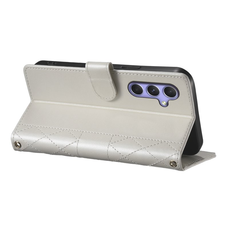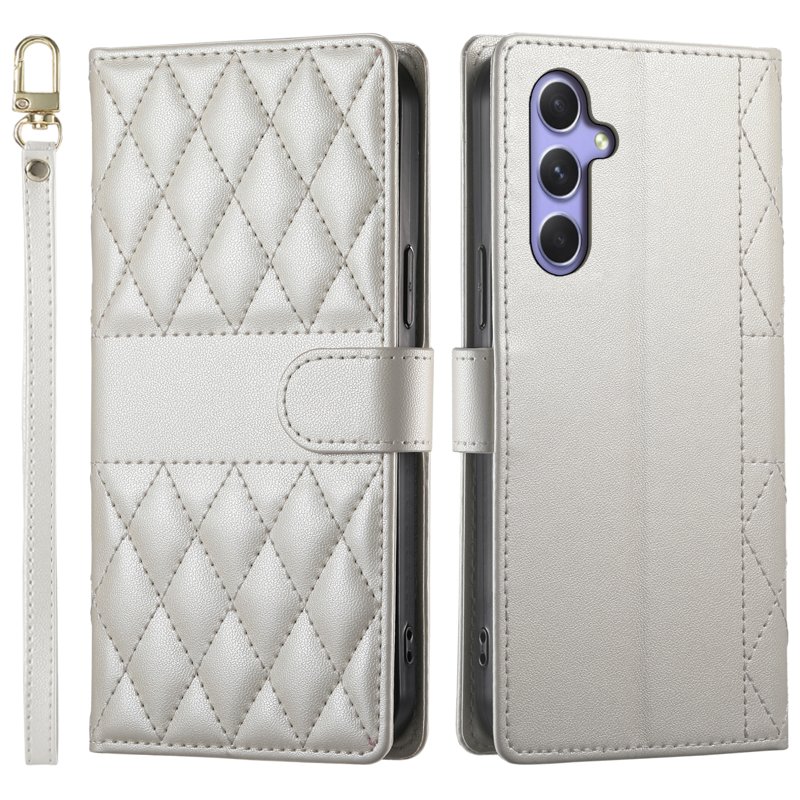 Skydda din Samsung Galaxy A55 5G med detta eleganta Rhombus Stitching Wallet Stand Leather Phone Cover. Denna plånboksfodral kombinerar stil och funktionalitet. Med flera kortfack och en praktisk stående funktion är detta fodral perfekt för den moderna användaren.