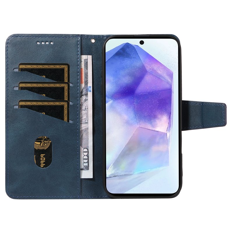 Skydda din Samsung Galaxy A55 5G med ett stiligt och funktionellt plånboksfodral. Detta fodral i blått är tillverkat av högkvalitativa material och erbjuder både säkerhet och bekvämlighet. Med flera kortfack och en praktisk ståfunktion är detta fodral perfekt för den moderna användaren.