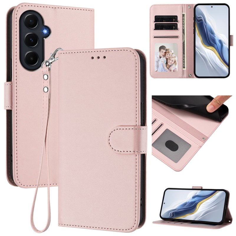 Skydda din Samsung Galaxy A55 5G med detta eleganta läderfodral i rosa. Fodralet erbjuder både stil och funktionalitet. Med smarta fack för kort och en praktisk ställfunktion är det perfekt för den moderna användaren. Håll din telefon säker och organiserad med detta högkvalitativa fodral.