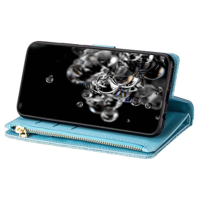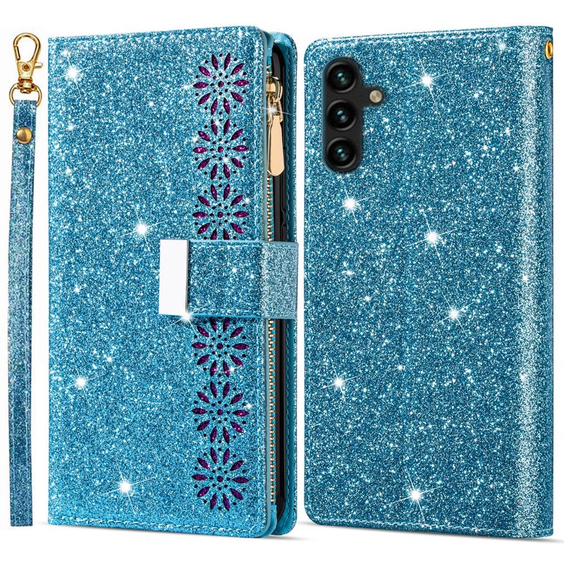 Skydda din Samsung Galaxy A55 5G med detta eleganta läderfodral. Fodralet har en praktisk design med plats för kort och kontanter. Den glittrande ytan ger en unik stil. Perfekt för den som vill kombinera funktionalitet med mode.