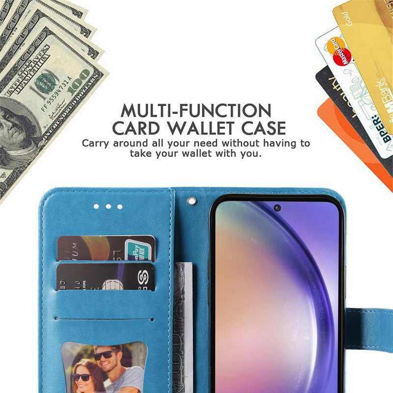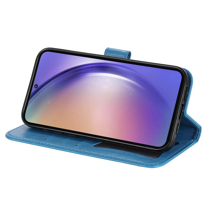 Samsung Galaxy A55 5G Plånboksfodral Blommönster Konstläder Ställ - Blå