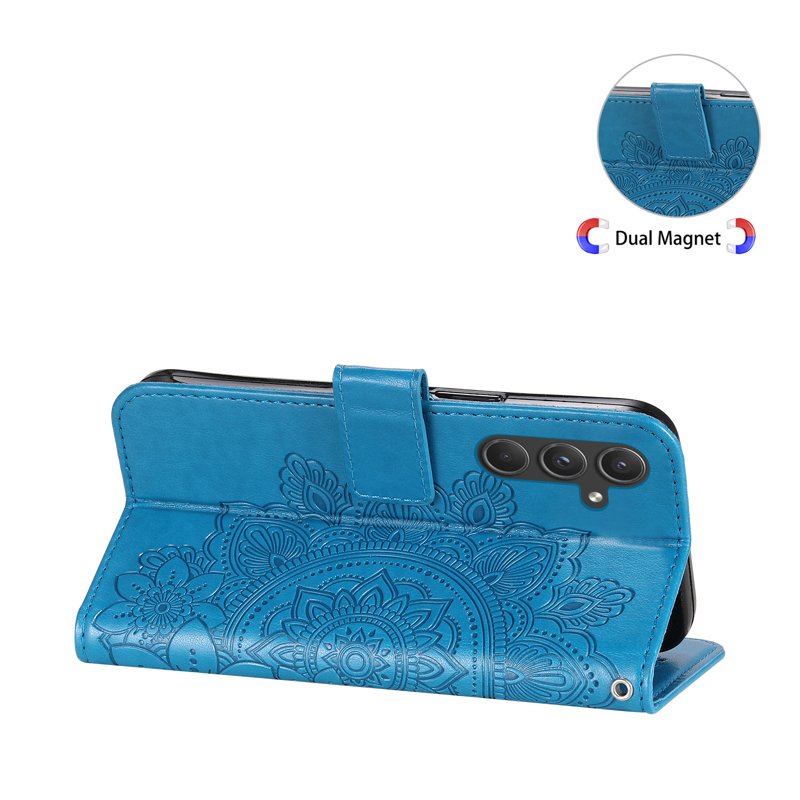 Handla denna produkt Samsung Galaxy A55 5G Plånboksfodral Blommönster Konstläder Ställ - Blå