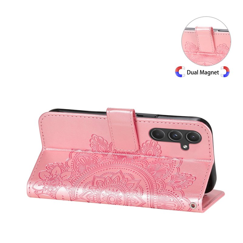 Samsung Galaxy A55 5G Plånboksfodral Blommönster Konstläder Ställ - Rosa