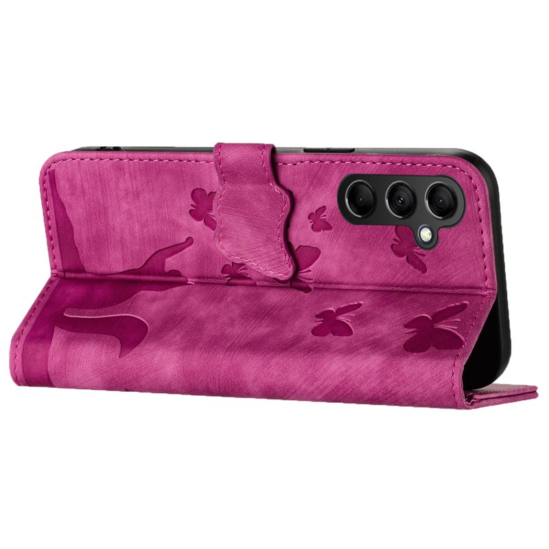 Samsung Galaxy A55 5G Plånboksfodral Fjäril Kattmönster Konstläder - Rosa