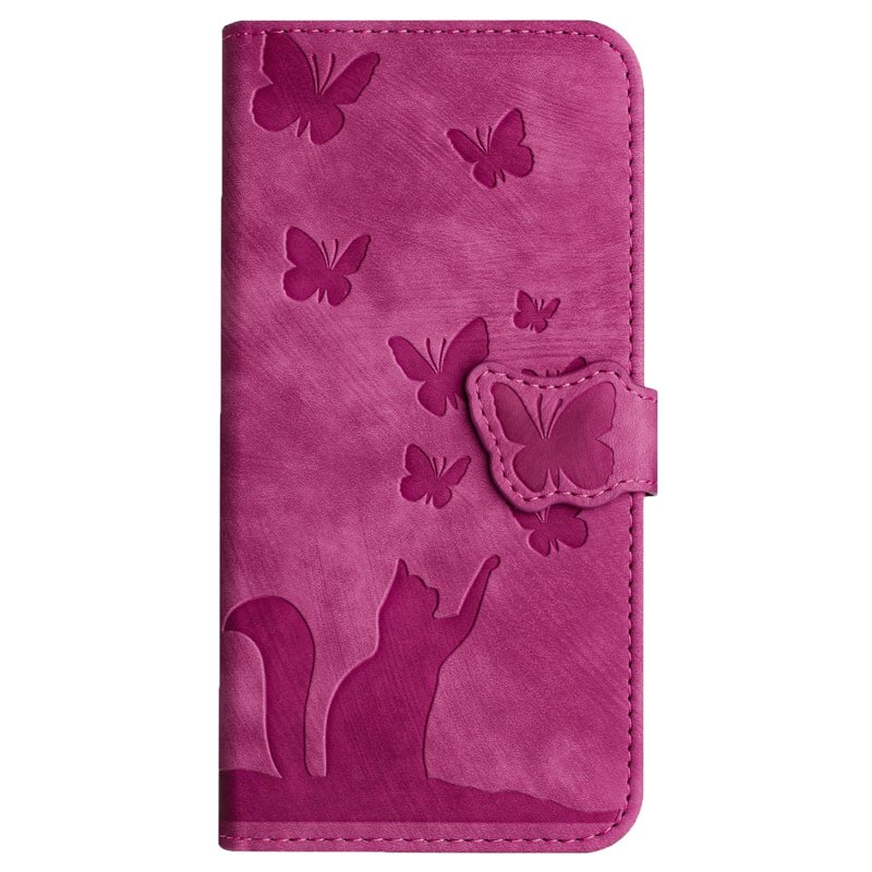Handla denna produkt Samsung Galaxy A55 5G Plånboksfodral Fjäril Kattmönster Konstläder - Rosa